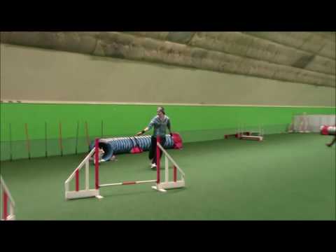 Trau agiliiteli poikkeuksellisesti jo tänään. Kisanomaiset treenit ja helppo rata, ekalla radalla kahden putken välinen pidempi pätkä oli vaikee, mutta tokalla kerralla sekin sujui kivasti. Tokalla yrityksellä yhden putken pää oli vähän hukassa, mutta ite taisin hidastella sitä ennen niin ihmekös tuo. Mutta hei, kerrankin meillä on paremmasta radasta liikkuvaa kuvaa: